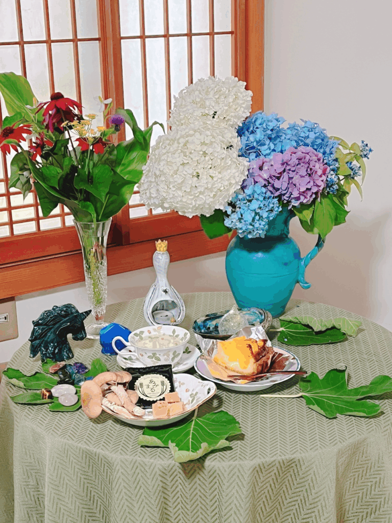 この日は、かよこさんが生けられていたクチナシに妖精さんがいらっしゃっていたようで、お出迎えしてから、お帰りしてもらうまでの花の香りが、特に強く香しいのが印象的でした🧚🤍🧚