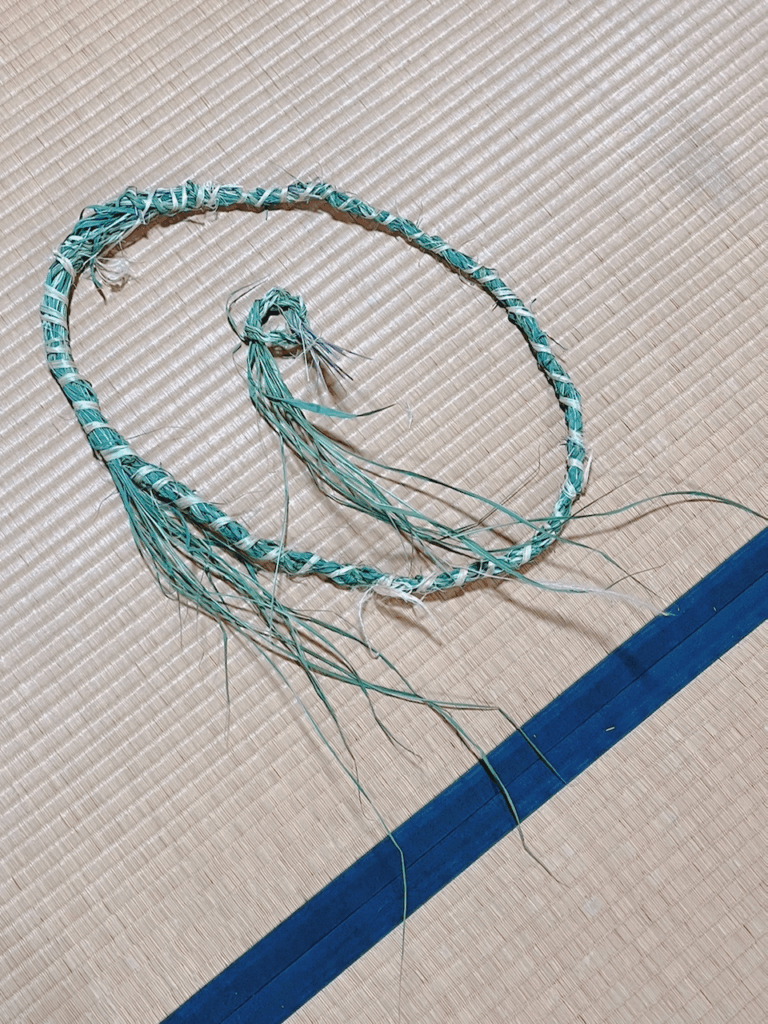 しかも、ご近所(京都の市中←決して田舎ではないが)に群生している茅(ちがや)を刈って作られた手作りのもの。